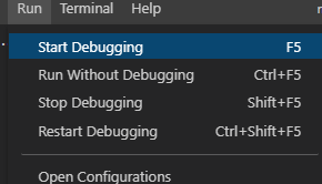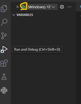 툴바의 Run 버튼을 눌러 Start Debugging을 누르면 디버거가 실행될 것이다.