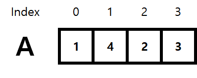 1, 4, 2, 3 의 값을 원소로 갖는 순열 A가 있습니다. 다음 그림을 보도록 하겠습니다.