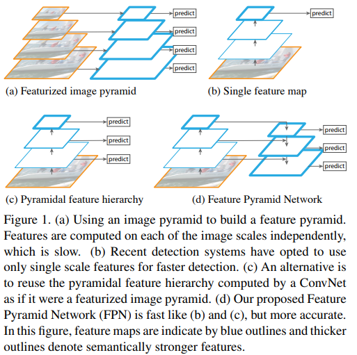 위 그림에서 (d) 가 feature pyramid network 논문에서 나온 구조인데 그림만 봐도 hierarchical backbone에 의존적인 구조임을 알 수 있다. 그리고, 이 구조는 high performance object detection model을 설계하기 위한 하나의 inductive bias가 되어버렸다. 우리가 알고있는 대개 유명한 obejct detection 방법들(YOLOv3, YOLOv4, YOLOv5, PP-YOLO, FCOS, EfficientDet 등)은 대개 이 구조를 따라 디자인되었다. 2022년 05월 01일을 기준으로 SOTA object detector들은 Swin Transformer를 백본으로 하는 경우가 많은데 이 Swin Transformer도 hierarchical 구조로 FPN에 적합하다. 아예 Swin 논문에서 Swin은 Hierarchical 구조이므로 FPN 구조를 쉽게 적용가능하는 것이 장점인듯이 표현이 돼있는 걸 알 수 있다.