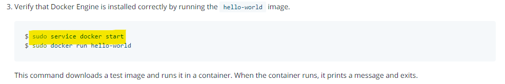 Proposed changes I added start command before running sudo docker run hello-world because we can't run docker image after installing docker following guide without running docker. Related issues (...