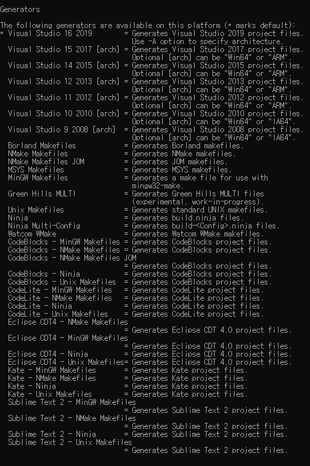 cmake -help