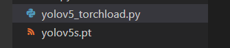 일단 온라인 환경에서 위 코드를 실행시키면 코드가 존재하는 경로에 Weight이 저장(아래 사진에서 yolov5s.pt)될 것이다. yolov5_torchload.py 파일에는 위 코드가 작성돼있다.