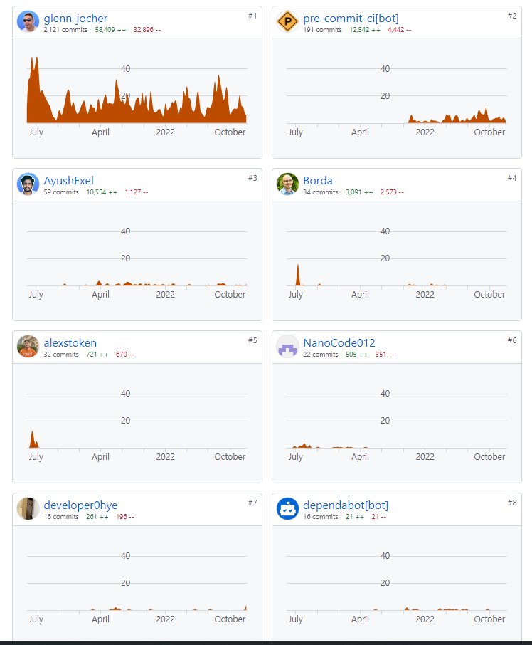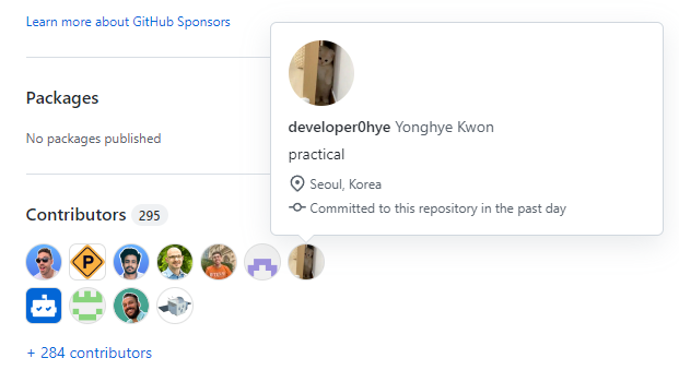 요새 좀 시간이 남고 YOLOv5 로 실험 좀 해보고 있어서 코드 보다가 수정할만한 부분이 생기면 바로바로 PR 날렸다. 그러다보니 원래는 커밋 횟수 기준 상위 8번째에 위치했는데 최근에 많이 작업하면서 7번째로 다시 올라왔다! 각잡고 하면 상위 3번째까지는 올라갈 수 있을 거 같다.