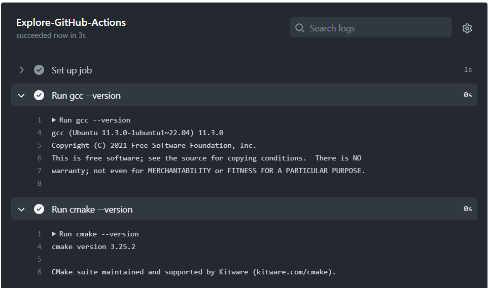 깃헙에서 제공해주는 native ubuntu 에는 20230125 기준 gcc 11.3, cmake 3.25가 기본적으로 탑재돼있구나!