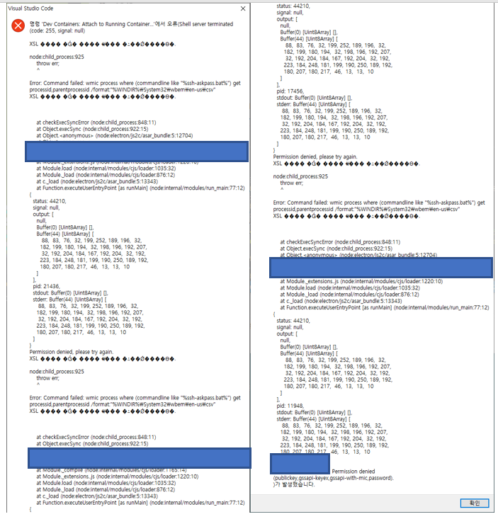 developer0hye 2023. 2. 4. 00:22VSCode의 Extension인 Dev Containers(= Remote-Containers) 를 이용하여 (1) 서버에 있는 PC의 (2) 도커 컨테이너에 접속해보려니 아래와 같은 오류가 출력됐다.
