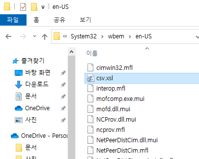 %WINDIR%\System32\wbem\en-US 에 복사한 cxv.xsl 파일을 붙여넣는다.