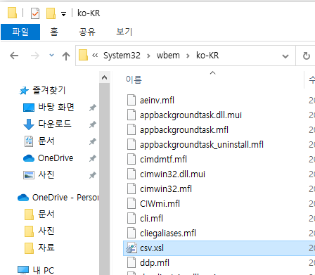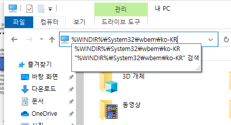 %WINDIR%\System32\wbem\ko-KR 폴더에 들어간다.