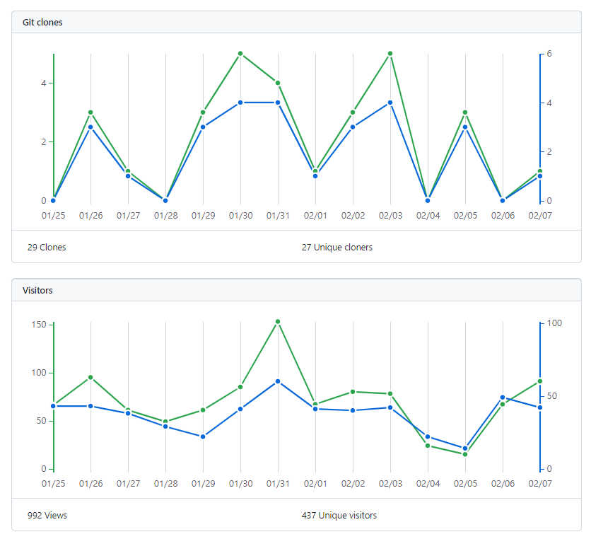 프로그램 배포(exe, .sh)형태로 따로 하다보니 클론수는 크게 적은 거 같다.