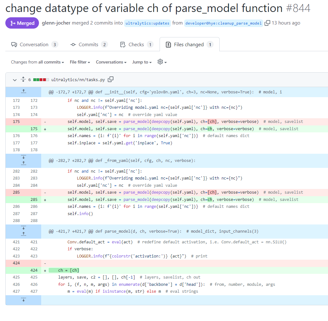 change datatype of variable ch of parse_model function by developer0hye · Pull Request #844 · ultralytics/ultralytics