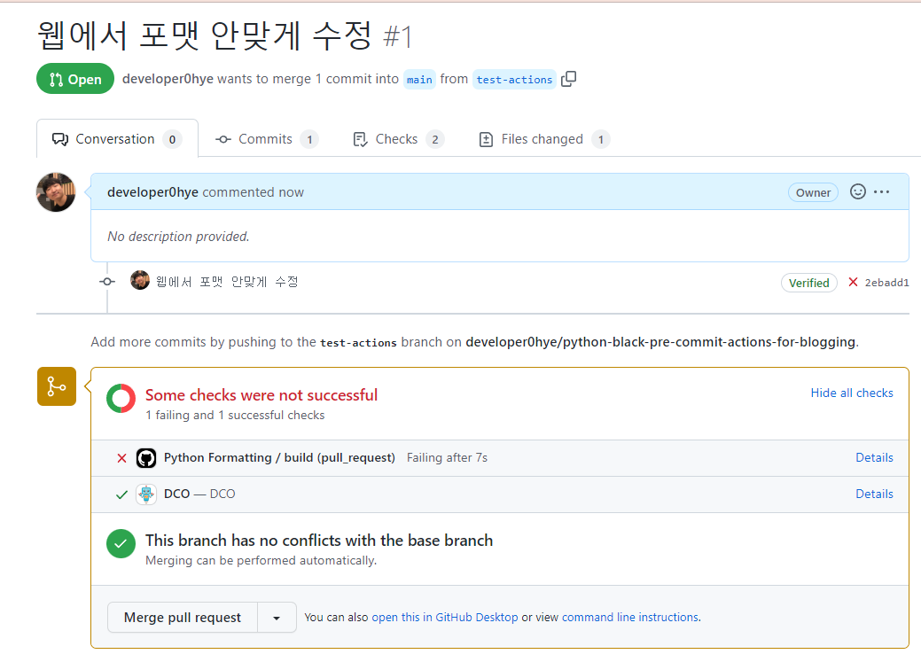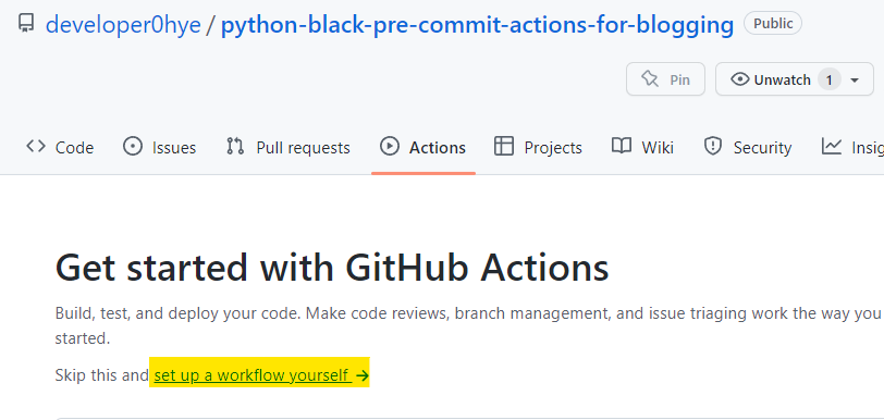 이 글의 제목은 "Gihub Actions, black, pre-commit 을 이용해 Python 프로젝트를 체계적으로 관리해보자 " 이다.