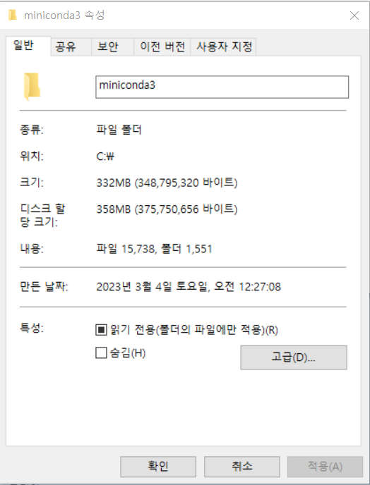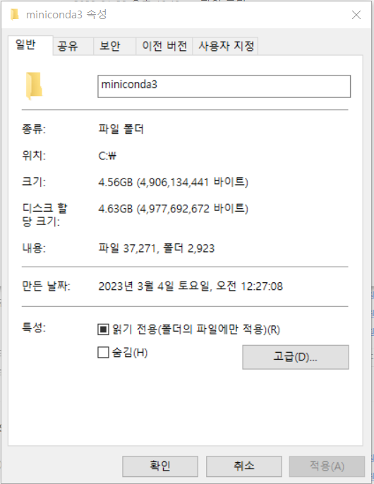 env 하나 만들고나니 다시 4.5기가가 됐지만 이정도면 양호하다. 이번에도 쓰다가 70기가 넘어가고 하면 진짜 한 번 큰 용량을 차지하는 파일 및 폴더를 살펴봐야겠다.