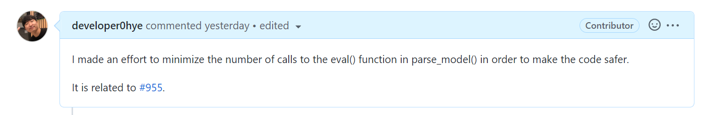 remove eval in parse_model by developer0hye · Pull Request #1273 · ultralytics/ultralytics