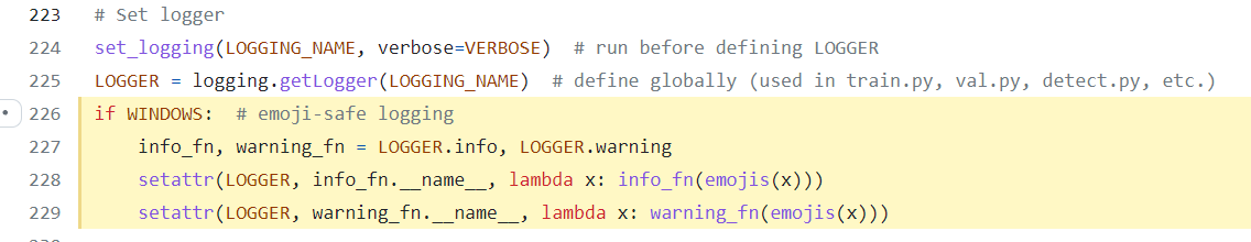 그리고, YOLOv8 프로젝트는 윈도우 OS의 경우 Logger 클래스의 info 함수와 warning 함수에 문자열이 입력되기전에 항상 emojis 함수가 호출되게끔 구현을 했다.