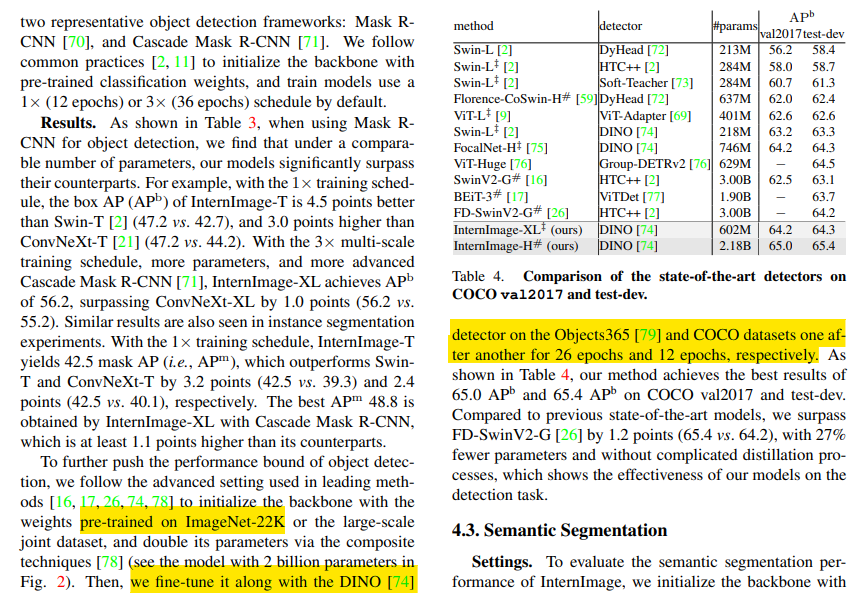 현재(2023년4월24일) COCO 벤치마크 기준 1등 방법인 InternImage 도 이러한 advanced setting(논문식 표현)을 따랐다.
