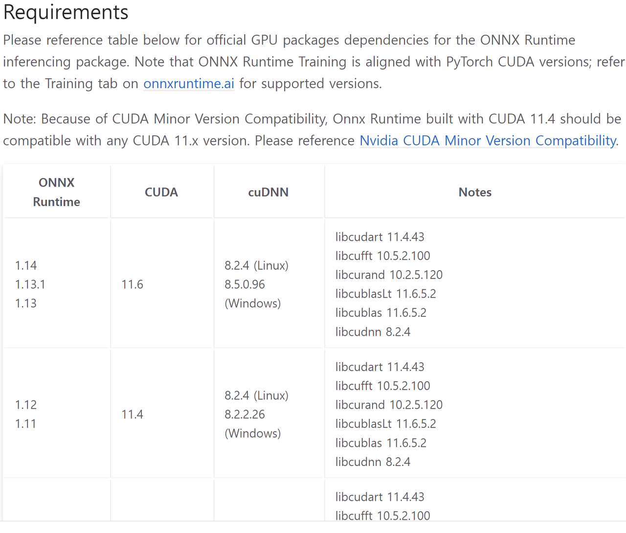 [Documentation] The version of CUDA and other libraries for onnxruntime1.15.1 · Issue #16967 · microsoft/onnxruntime