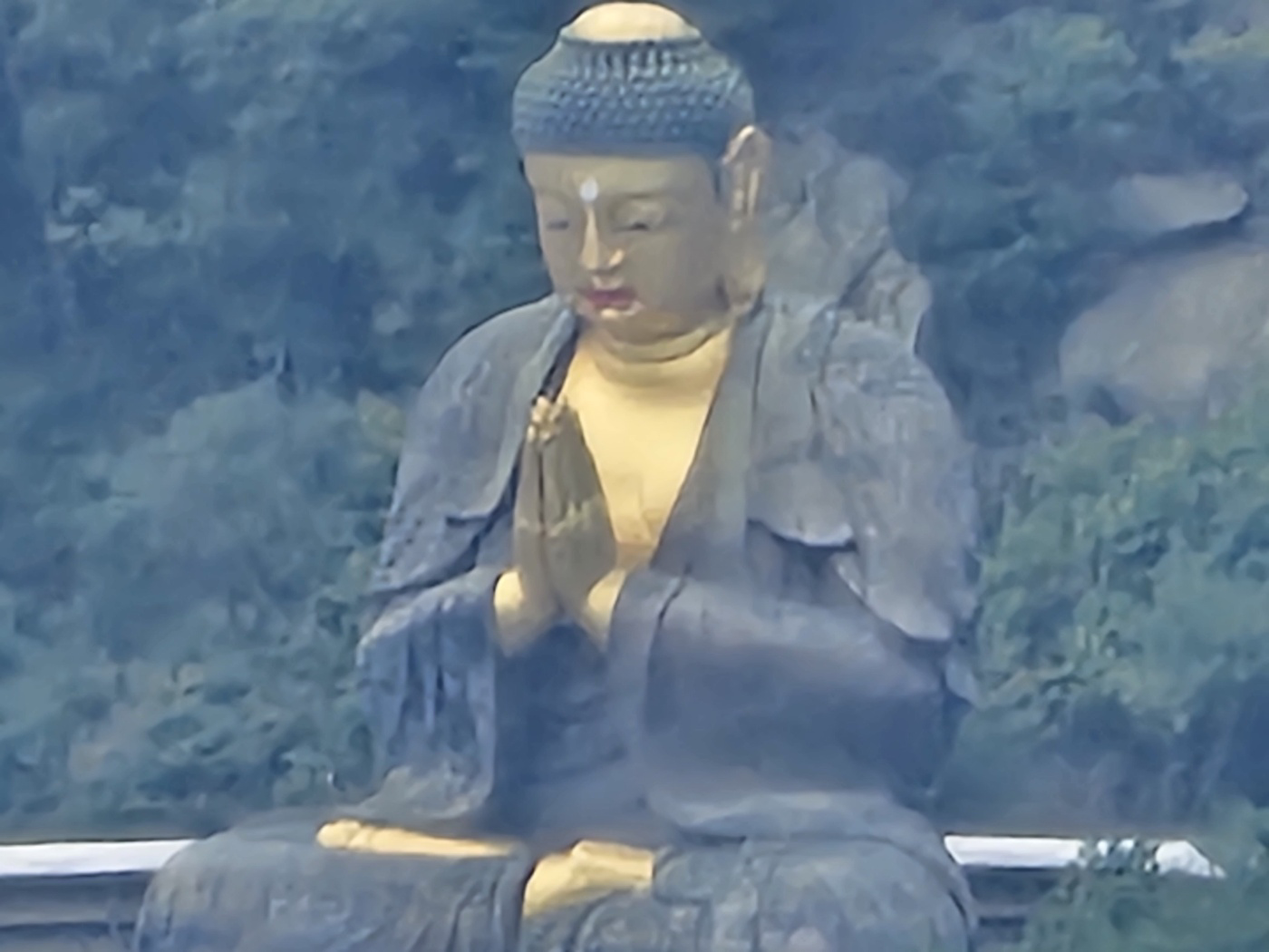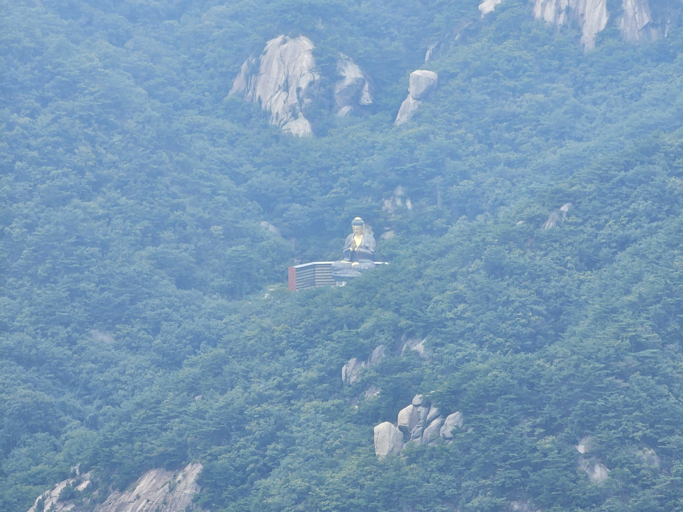 아래 사진에서 가운데 부근을 잘보면 황금색의 불상이 존재한다. 이 불상에 대한 줌 확대 테스트를 진행했다. 원효봉에서 자리를 잘 잡으면 이 불상이 눈으로부터 취득된 영상에서 가운데에 놓이게 앉을수가 있는데 그 위치가 딱 뷰 맛집이다.