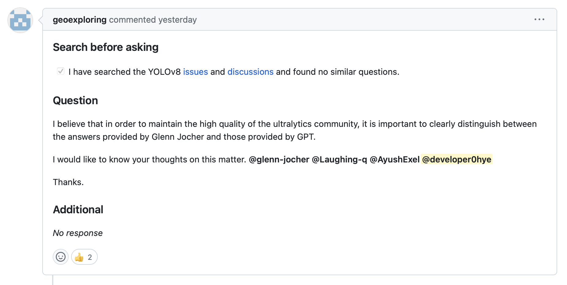 Should glenn-jocher's response be labeled as a response from GPT instead of his own response? · Issue #4654 · ultralytics/ultr