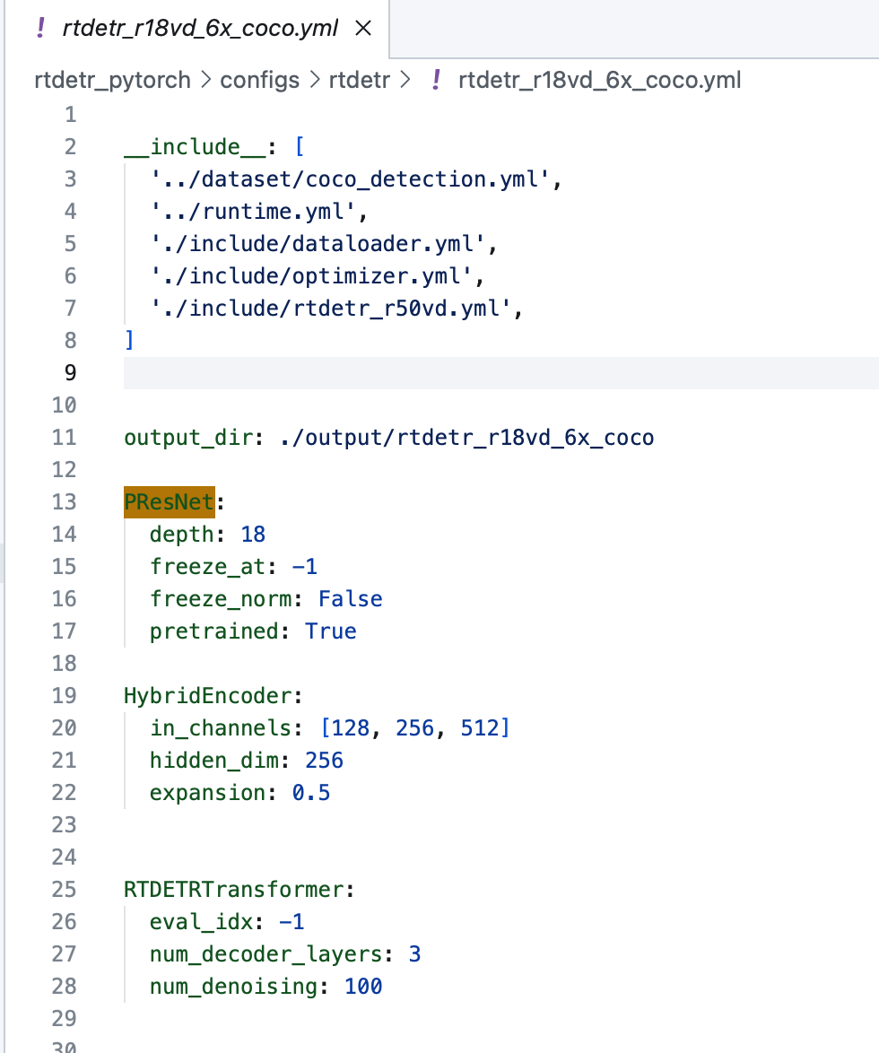 일단 모델 관련 컨피그 파일 보면 PResNet 이라 돼있는데 이건 아마 original implementation 을 paddle paddle 로 했어가지고 paddle paddle 에 구현된 ResNet을 사용한다는 의미로 P(addle paddle)을 붙인게 아닌가 싶다. 내 추측이다.