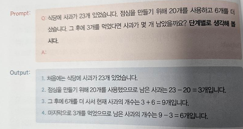 단지 프롬프트에 "단계별로 생각해보아라"라는 의미를 담아 주는 것입니다.