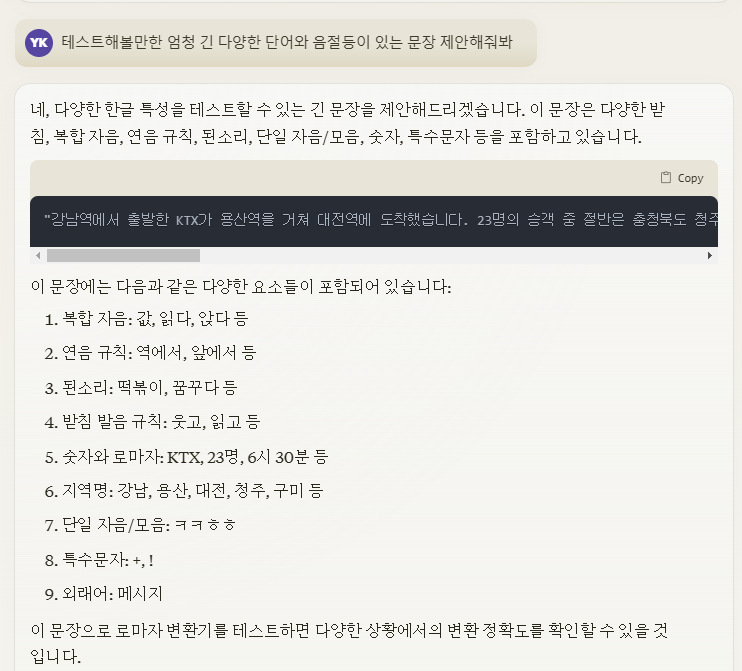 그리고, 테스트할 문장까지 제안해달라고 했다.