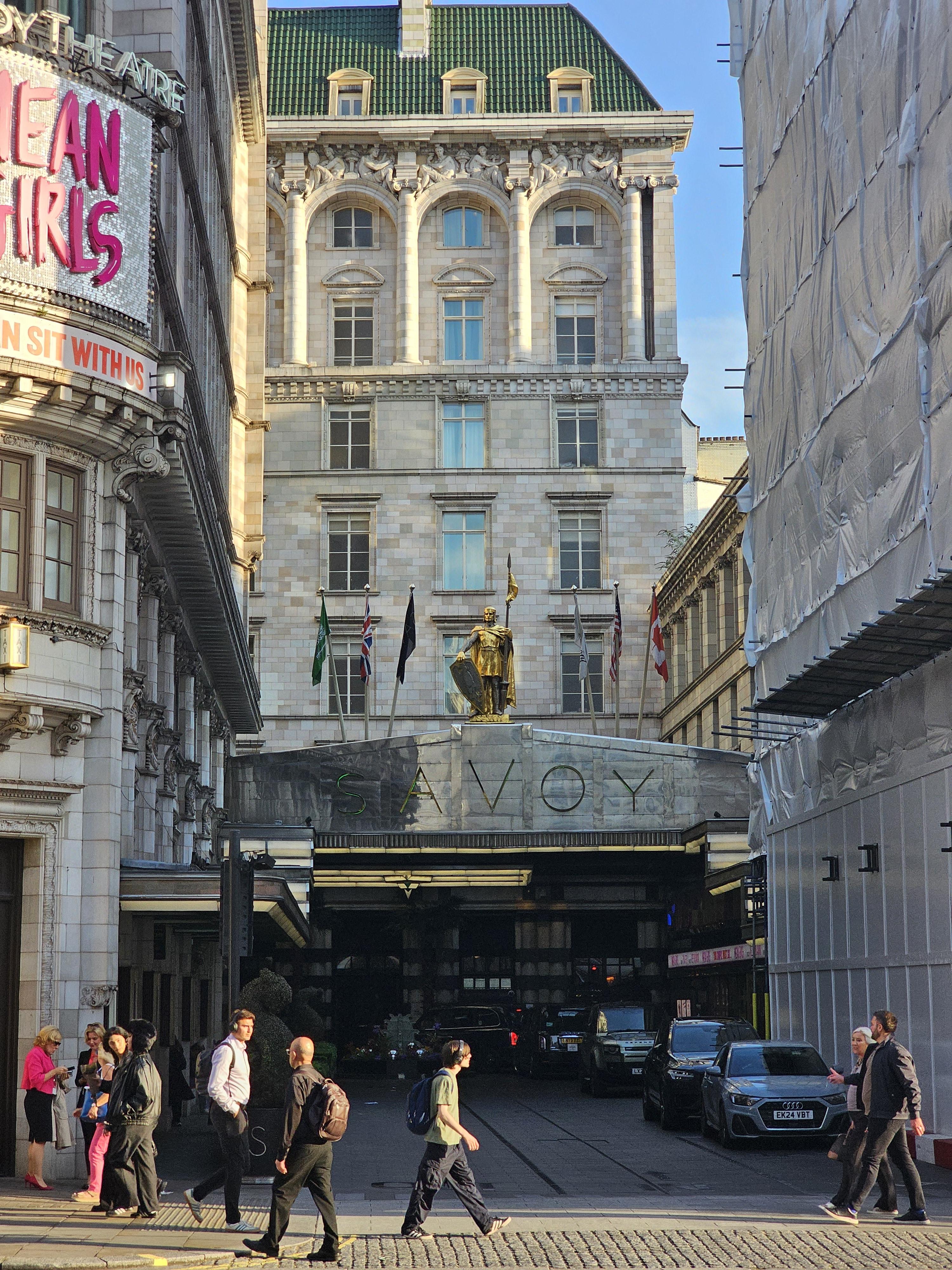 기사 동상이 정문을 지키고 있어요. 여기에 사보이 그릴이라는 고든램지 식당이 있습니다.