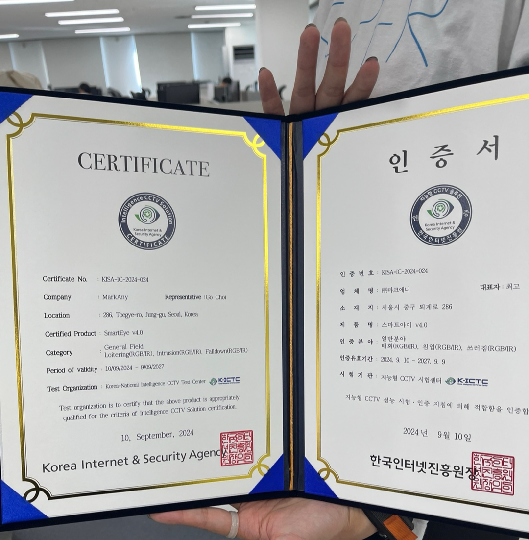 올해 진행했던 업무 중 개인적으로 잘 마무리 짓고 싶었던 업무 중 하나로는 KISA CCTV 인증시험(배회, 침입, 쓰러짐) 합격이였는데, 이또한 여행가기전에 합격 소식을 들어서 더 마음편히 다녀올 수 있었습니다. 지능형 CCTV 개발 분야에 3년 9개월 정도 속해있으면서 한 번도 KISA 인증 업무를 맡아 수행해본적이 없었는데, 이번 년도에 맡아서 인증까지 마무리 지을 수 있어서 참으로 좋은 경험을 해볼 수 있었다는 생각이 듭니다.