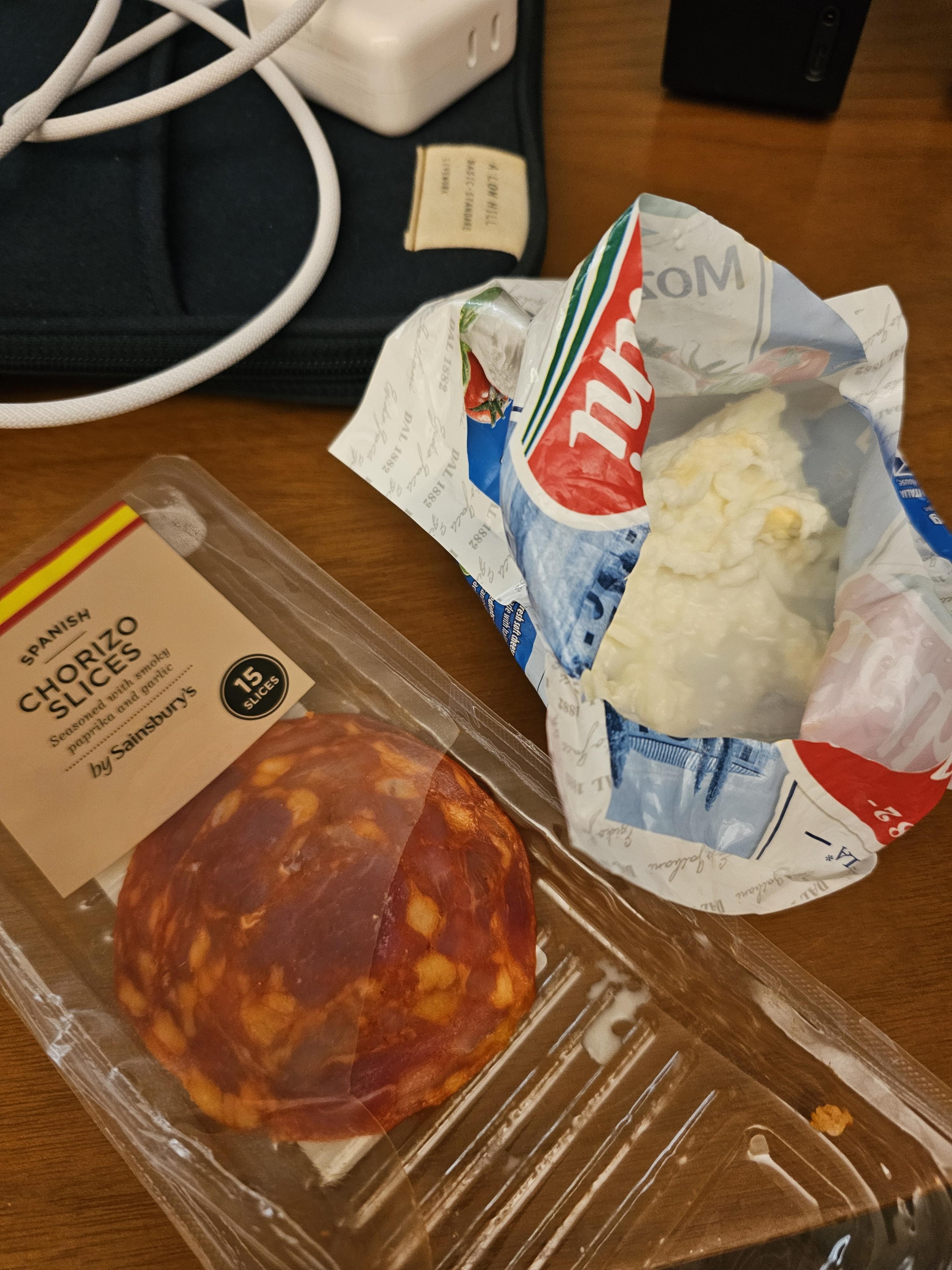 모짜렐라 치즈와 초리조 슬라이스