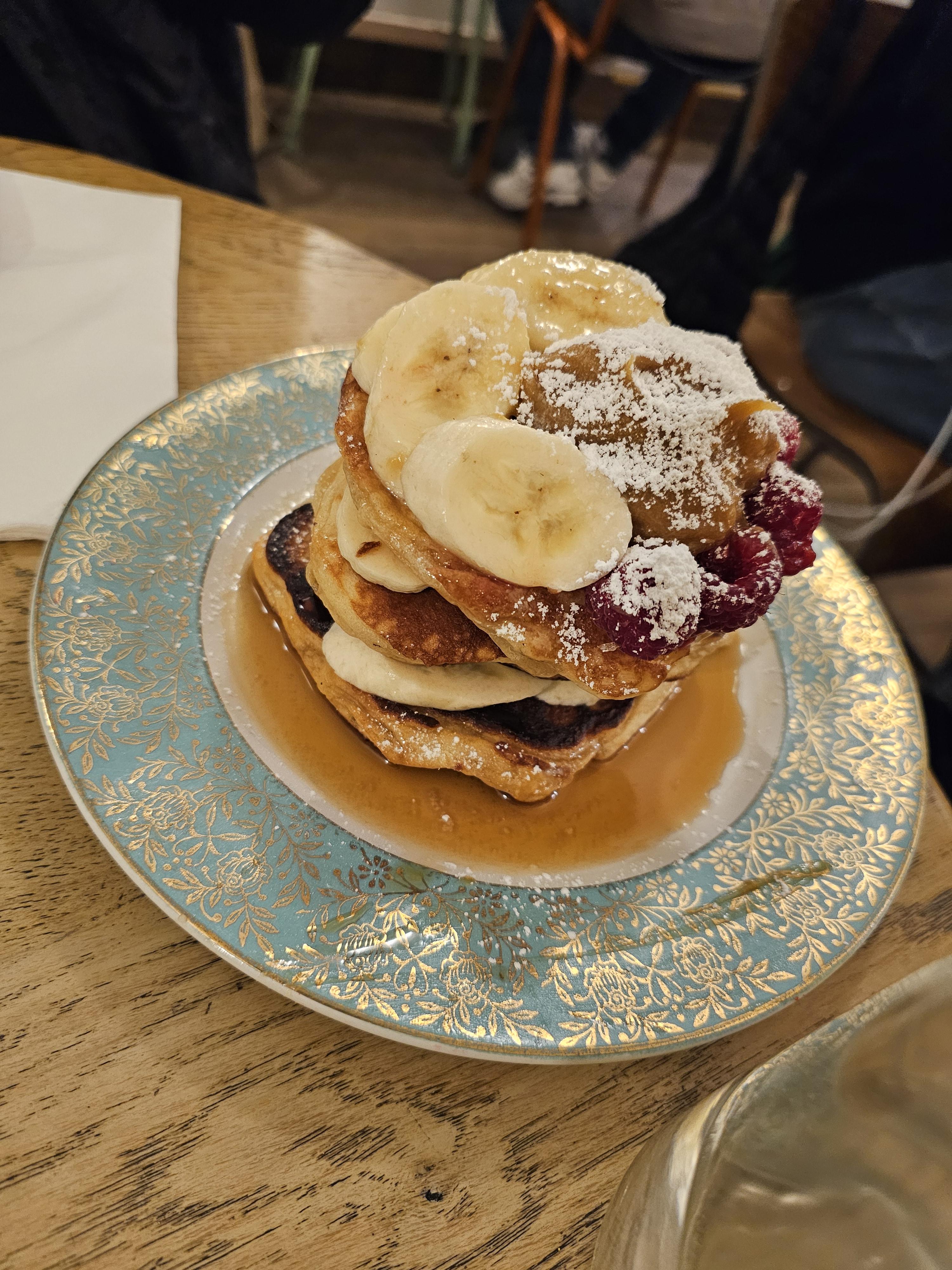 와 팬케이크에 카라멜 크림(? 확실치 않음)까지 곁들여 먹으면 진짜 죽음이에요. 기절해요.