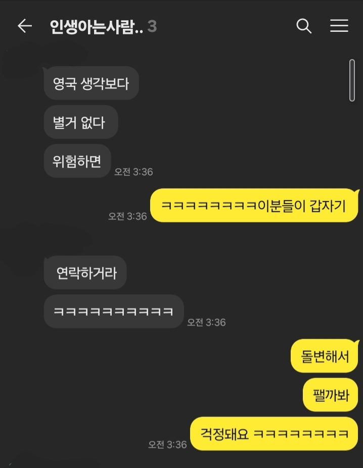 근데 이러고 아무일 없이 켄싱턴에 잘내렸답니다. 심지어 A가 우버 비용도 다 냈습니다... 그리고 B랑 빅벤도 보러가고 버거킹도 먹고... 다른 사건도 있었는데 이 사건은 텍스트로는 안남길게요. 하하