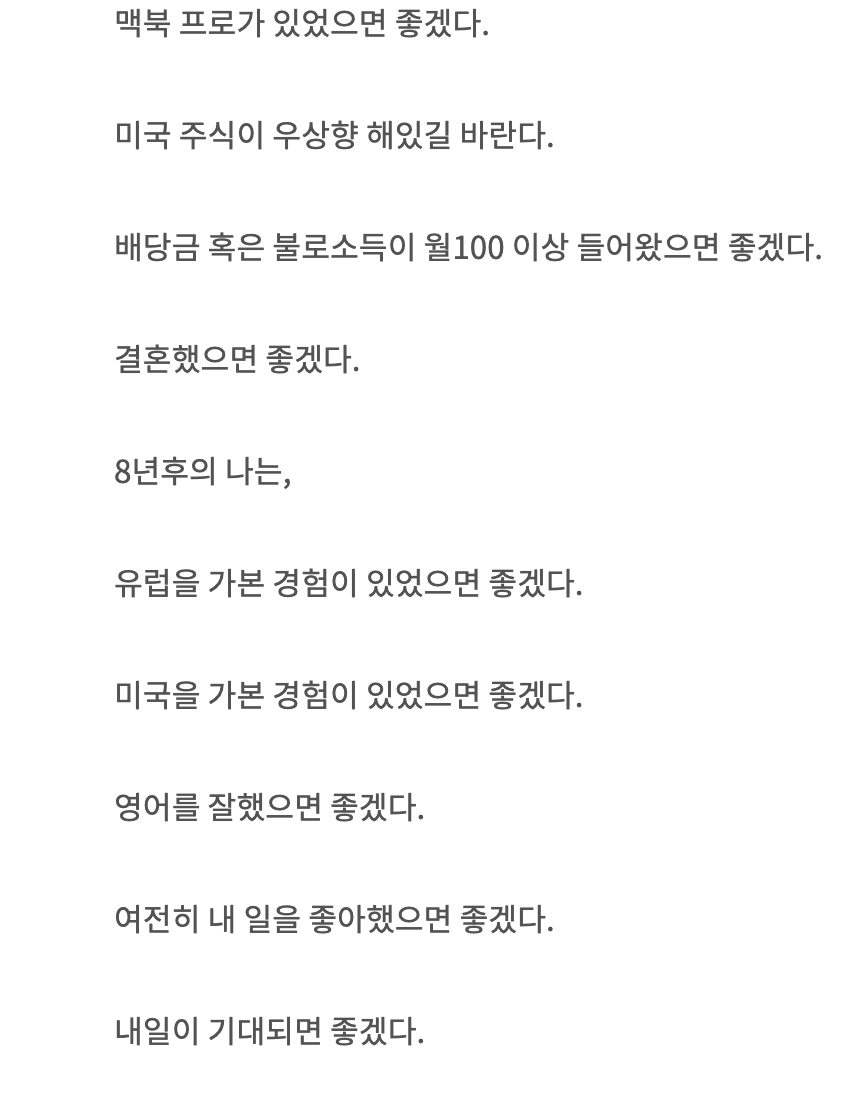 나머지도 차근 차근 이뤄가길 바란다.