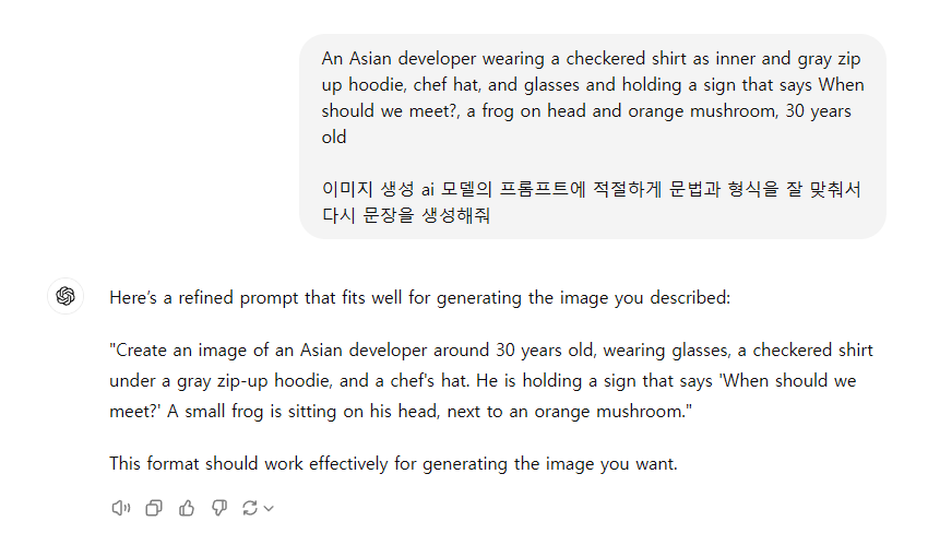 위 프롬프트 또한 ChatGPT 이용해서 좀 손본다음 입력함. 앞에 Create는 빼버림.