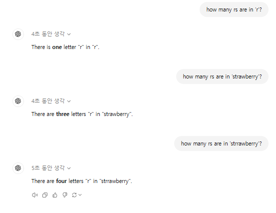 o1-preview가 strawberry의 r을 셀 수 있다고 해서 한 번 입력해봤다.