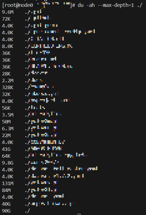 - --max-depth=1: 하위 디렉토리의 깊이를 제한하는 옵션입니다. 1로 설정하면 현재 디렉토리의 바로 아래에 있는 하위 폴더와 파일들의 크기만 보여줍니다. 더 깊은 디렉토리까지 확인하려면 숫자를 조정하면 됩니다.