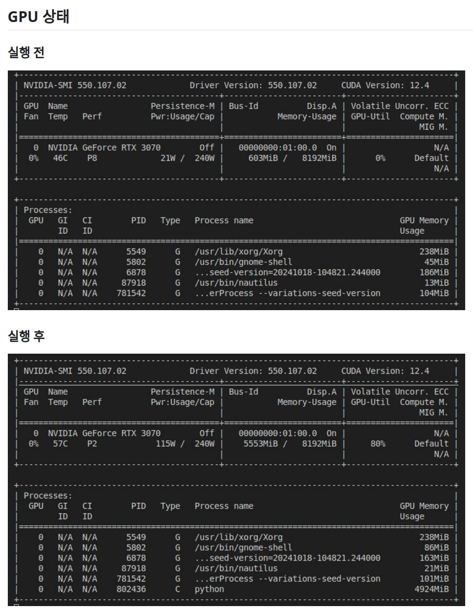 먼저 Llama3 8B 모델의 경우 모델 웨이트 업로드에만 15~16GB 가 소요됐었습니다. 이러면... 집에서 3070 8GB GPU로 이것 저것 뭔가 해보려는 저는 할 수가 없습니다. 모델 일부만 GPU에 업로드 한다거나? 하는 방식이 있지 않을까 싶은데 아직 찾아보지는 않았습니다.