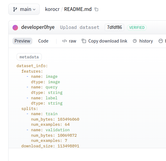 | Hugging Face 이미지, 텍스트 멀티모달 OCR 데이터셋 업로드 하루종일 삽질 (3) | 2024.11.27 |