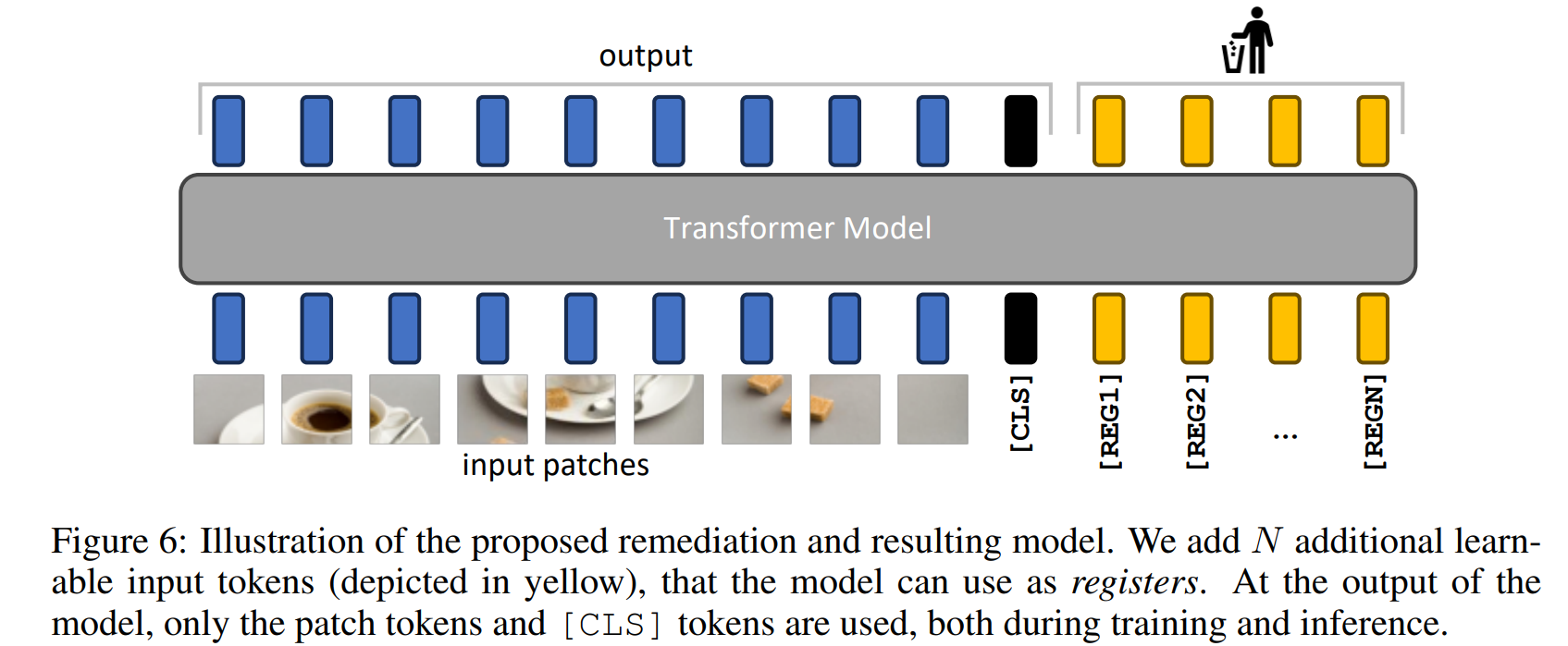 논문 그림에서는 cls token이랑 reg token이 뒤에 있지만 실제로 구현은 앞단에 concat하는 식으로 구현돼있다.