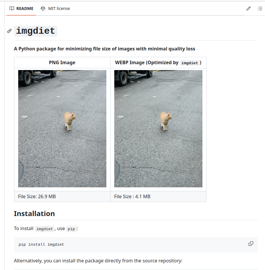 GitHub - developer0hye/imgdiet: A Python package for minimizing file size of images with minimal quality loss