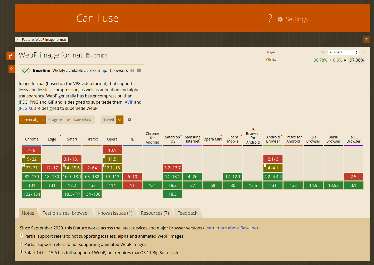 대다수의 브라우저가 webp를 지원한다.(https://caniuse.com/)