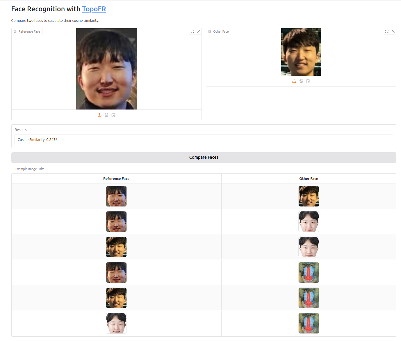 @DanJun6737 Thanks for sharing your works! I created hf demo space for this model. I also referenced this site in the README so that other users can easily test the results of the TopoFR model!