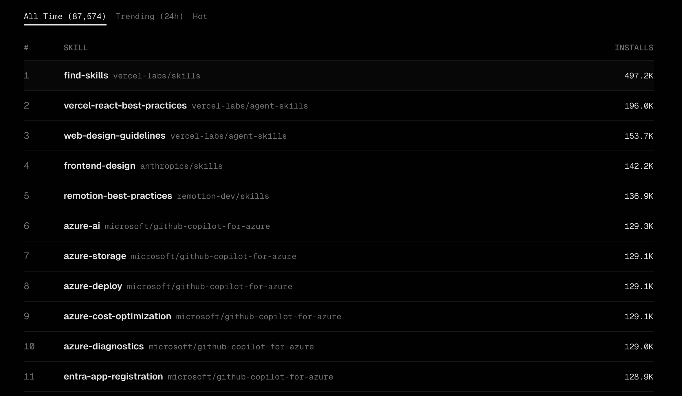 사람들이 어떤 스킬을 얼마나 다운로드 받았는지 알 수있다.